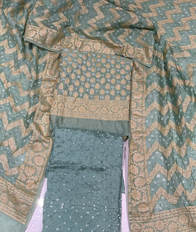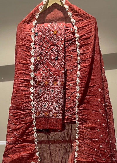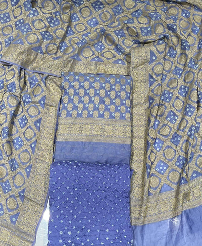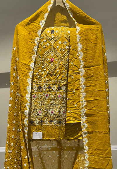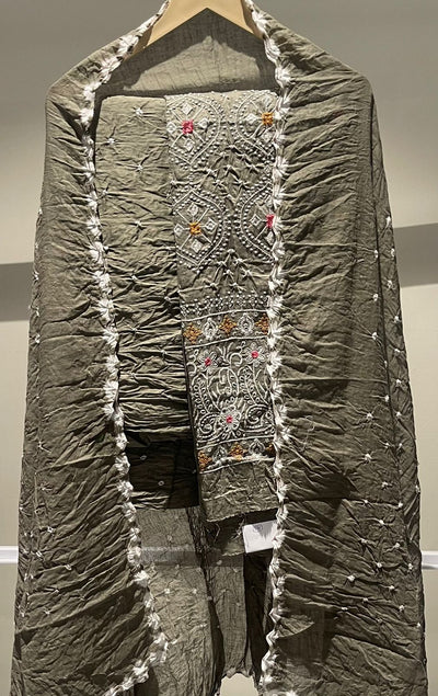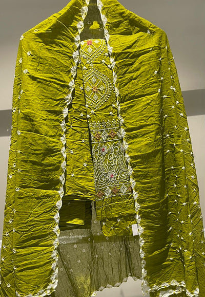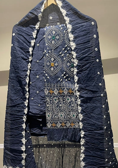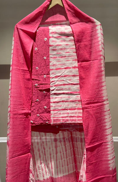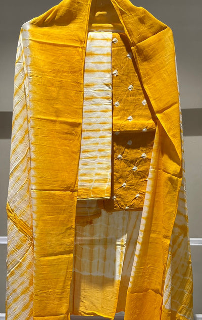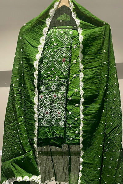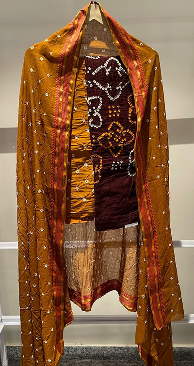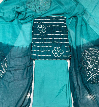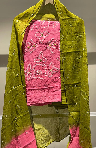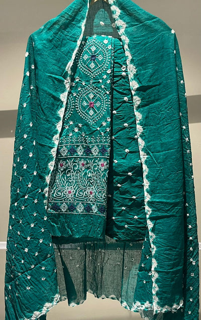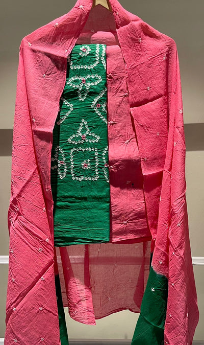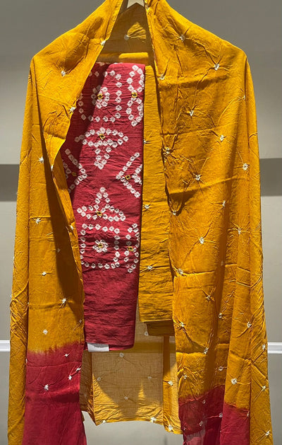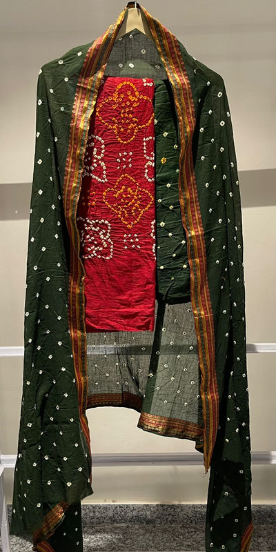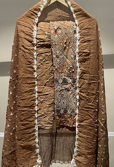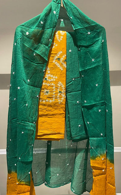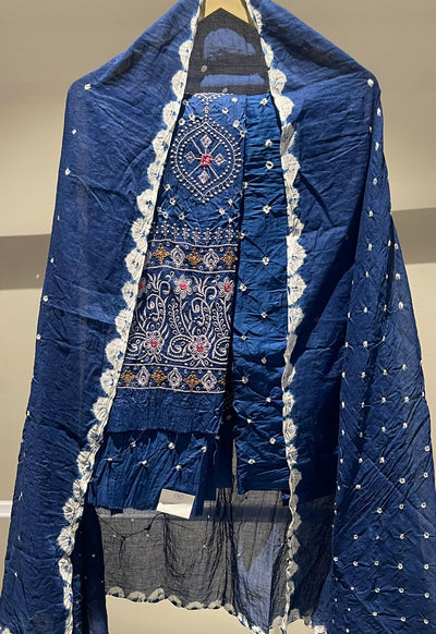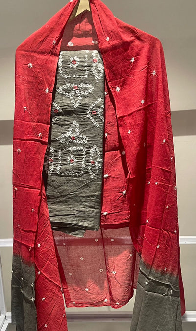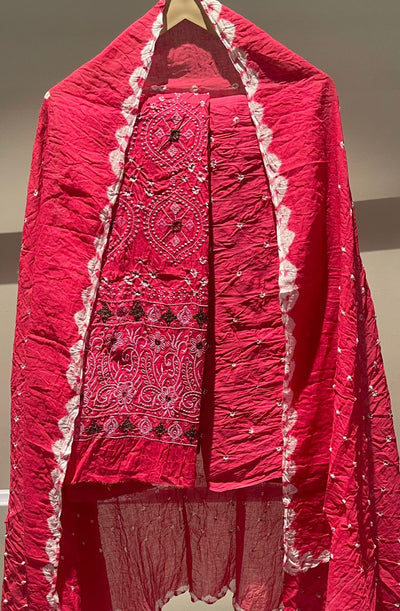 Premium Lakhnavi Hand Bandhani Cotton Suit Set