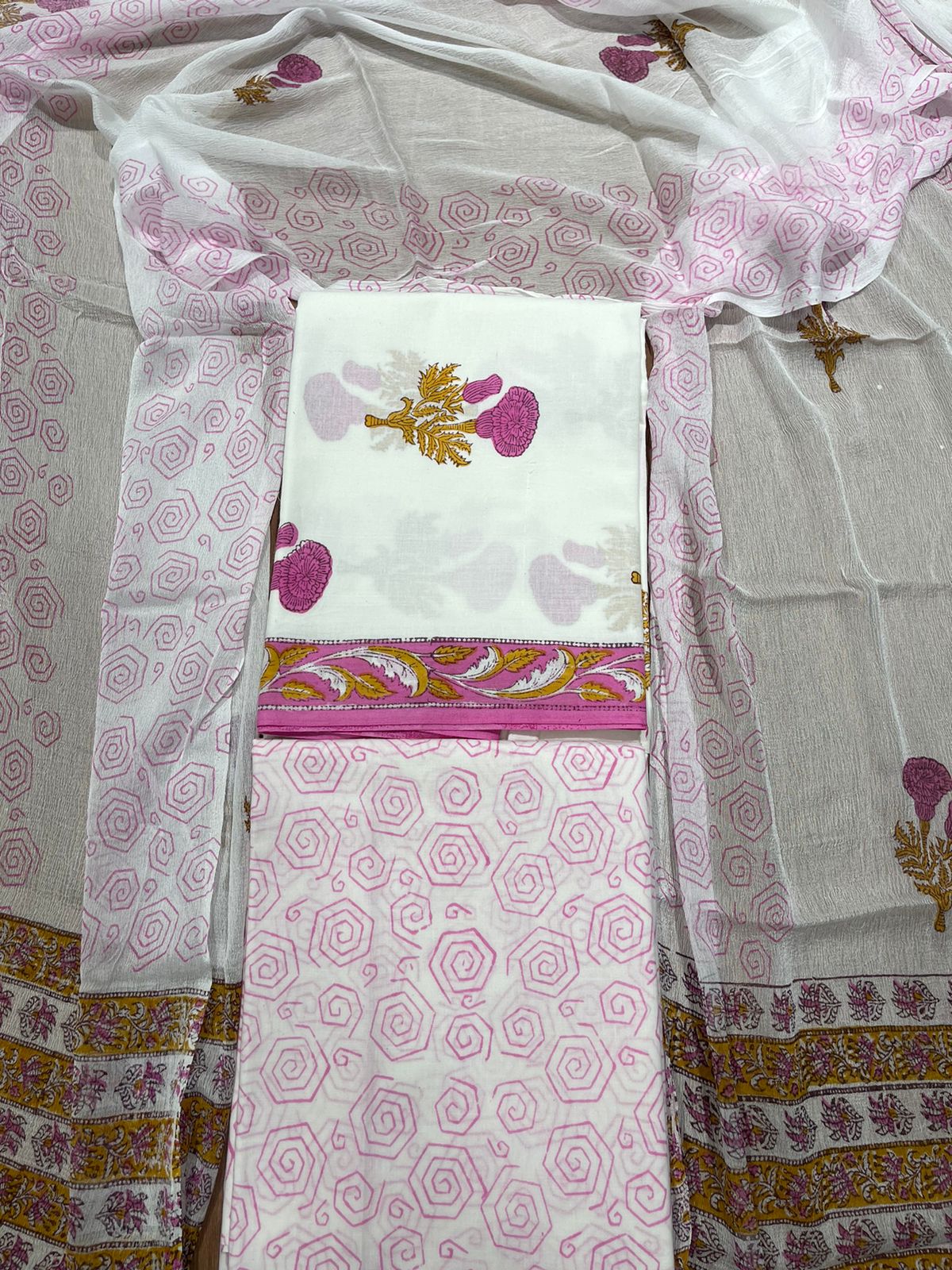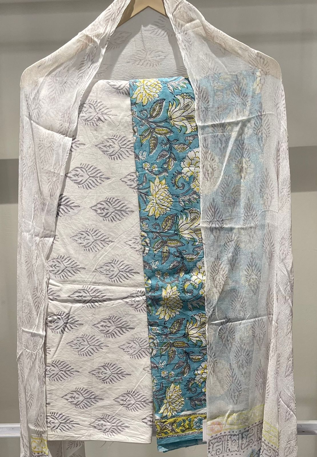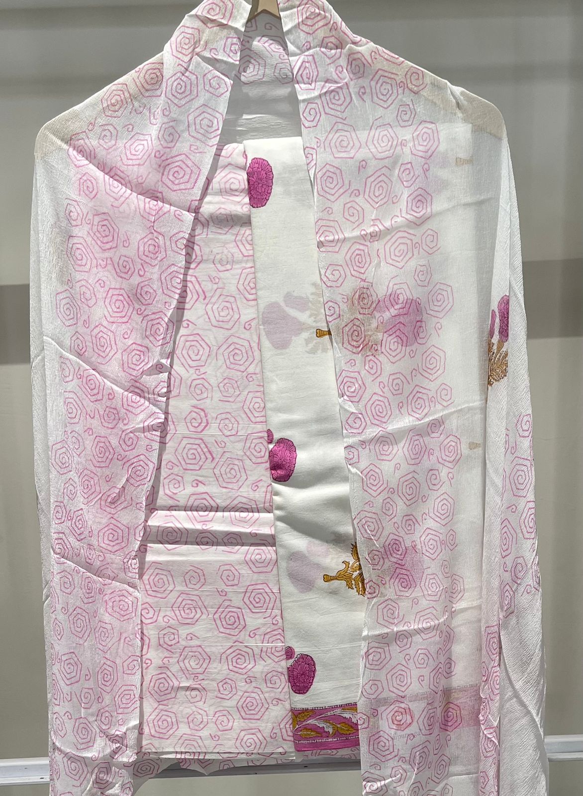 Hand Block Print Cotton Suit with Mulmul Cotton Dupatta