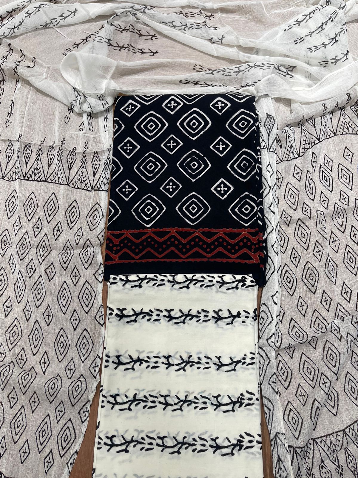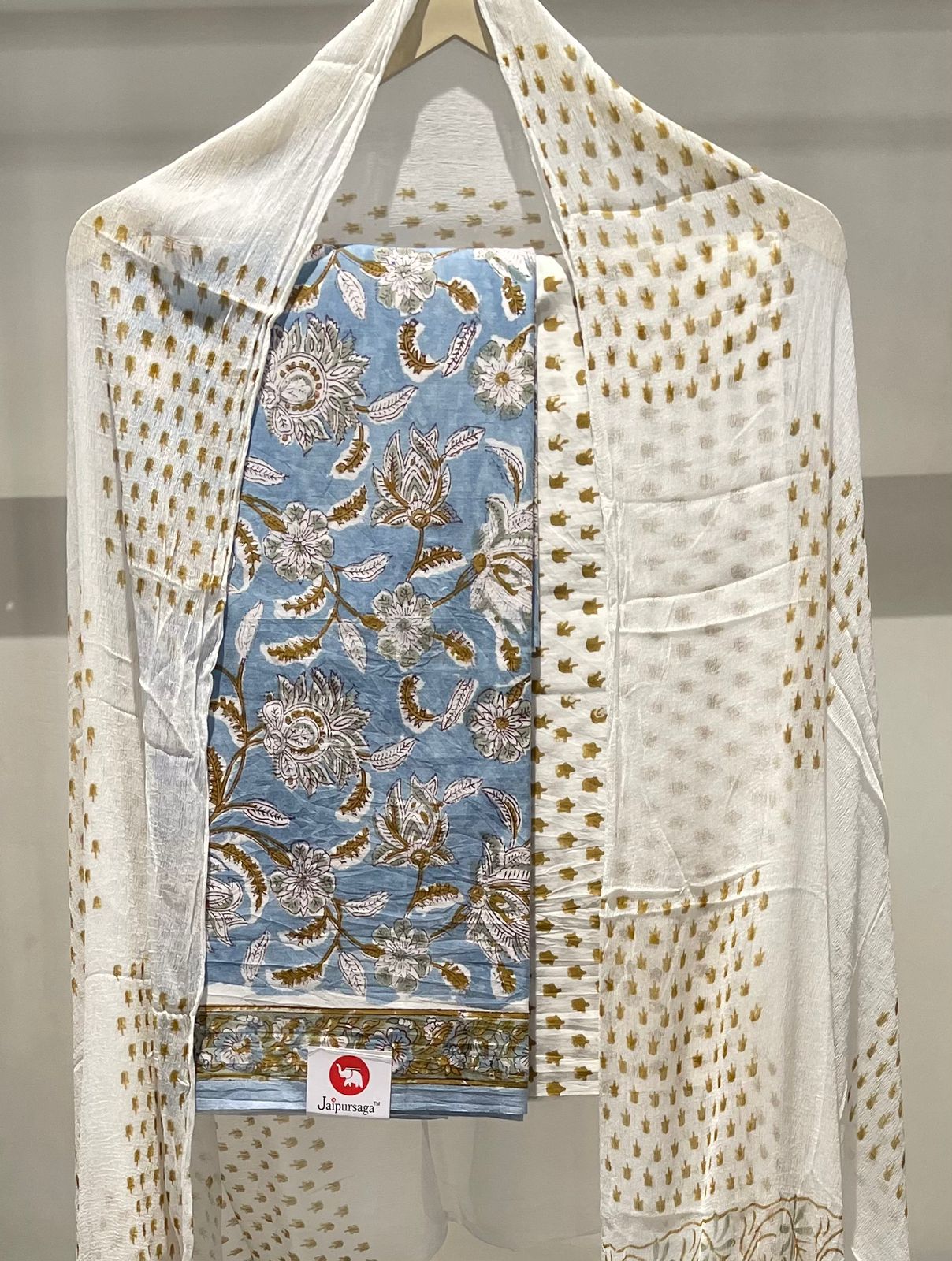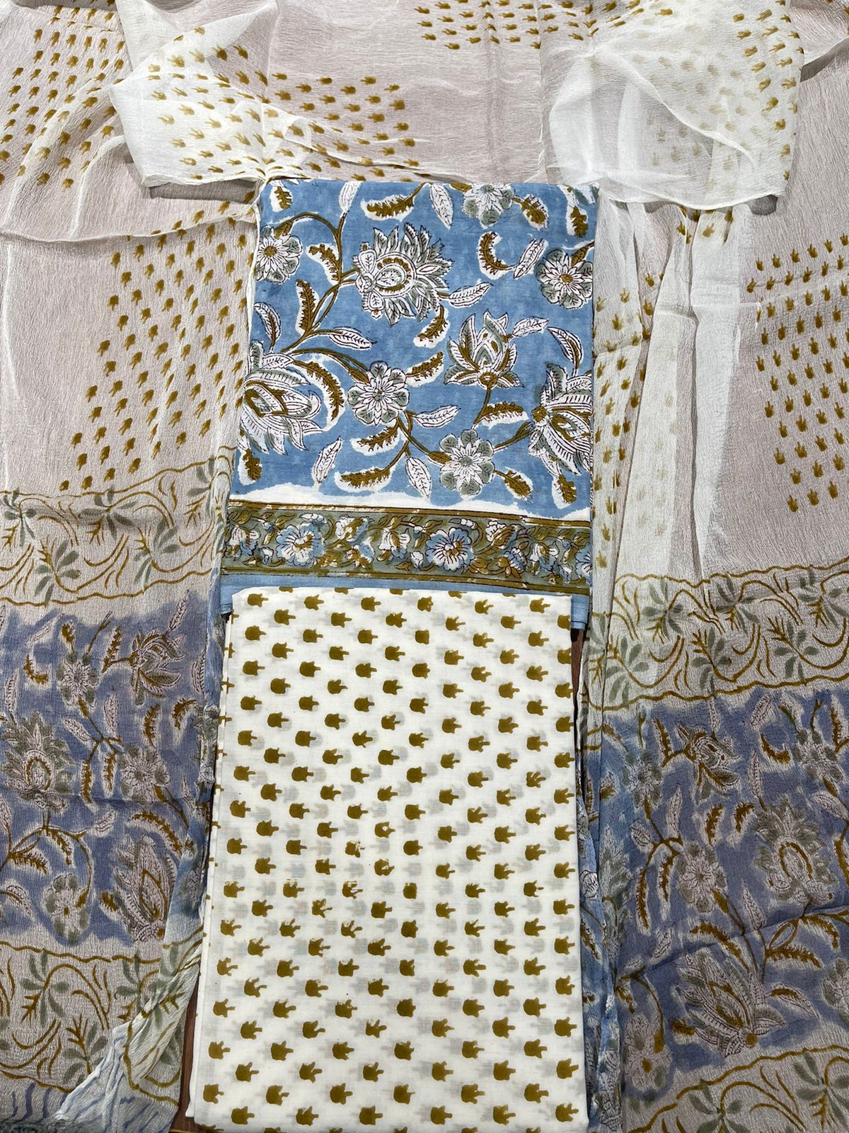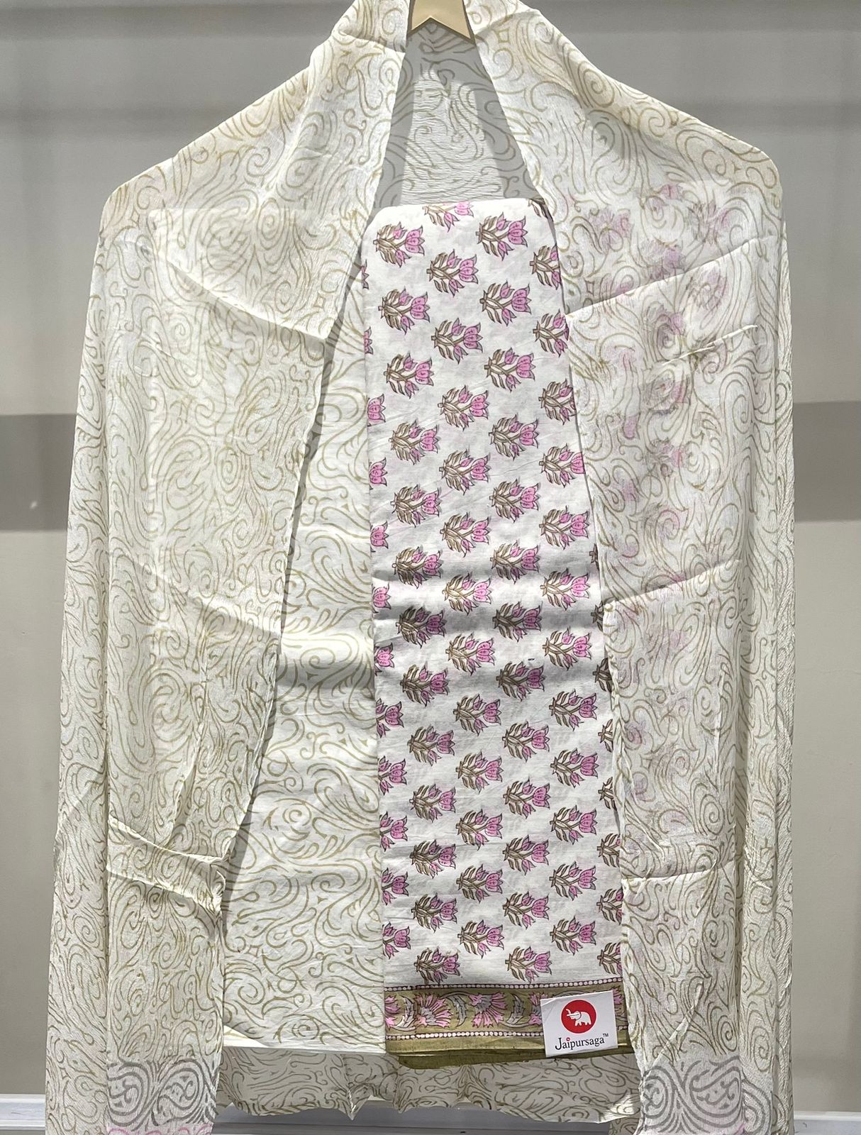 Hand Block Print Cotton Suit with Mulmul Cotton Dupatta