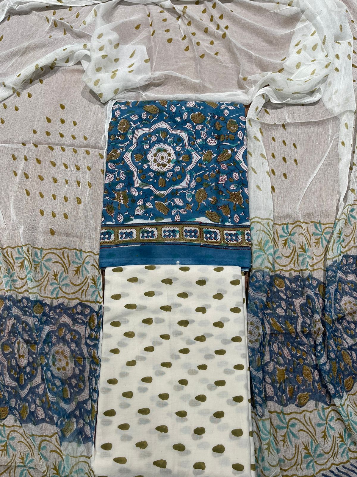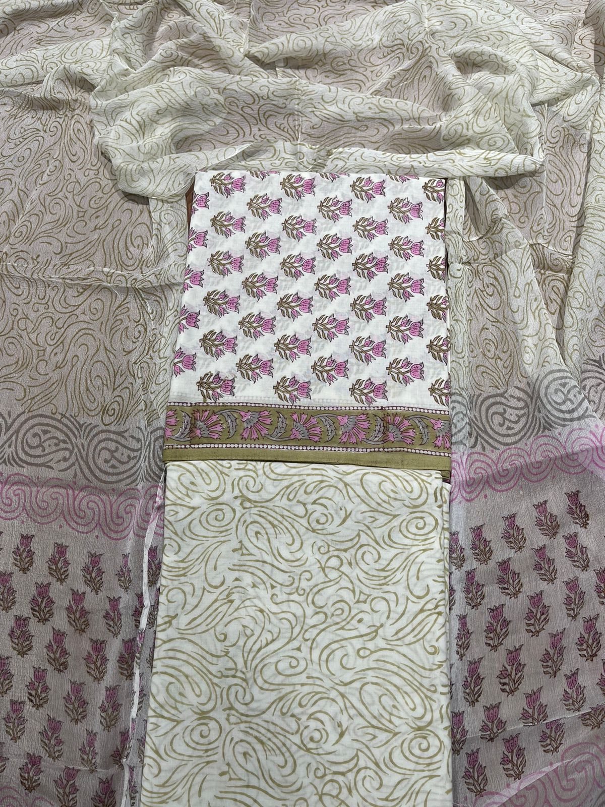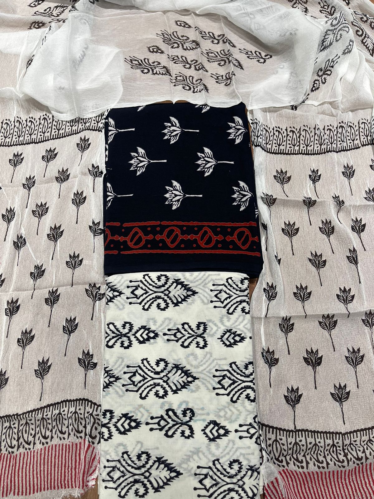 Bottom: Cotton hand Block Printed (2.40 Mtr)