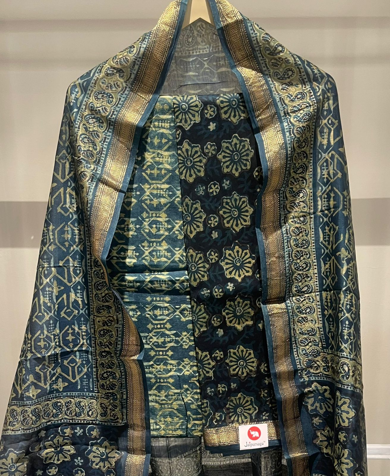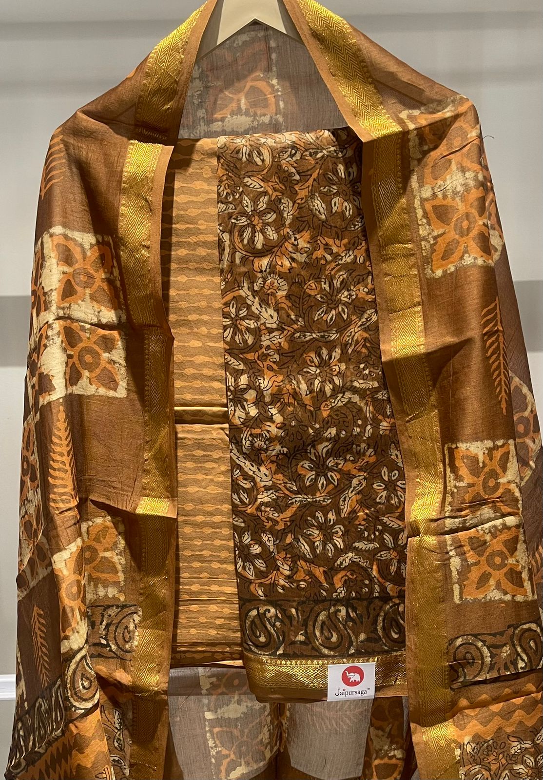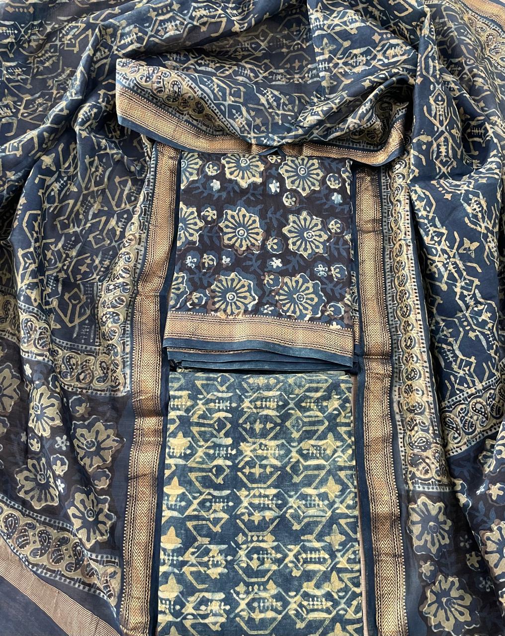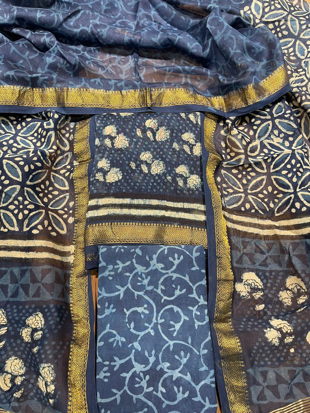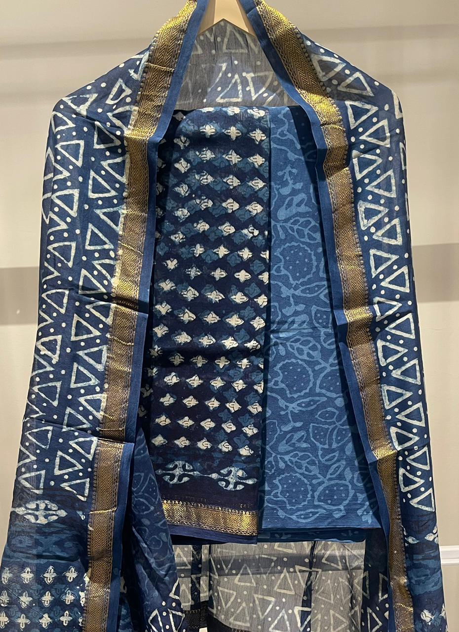 Mughal Hand Block Printed Maheshwari Silk Suit Set