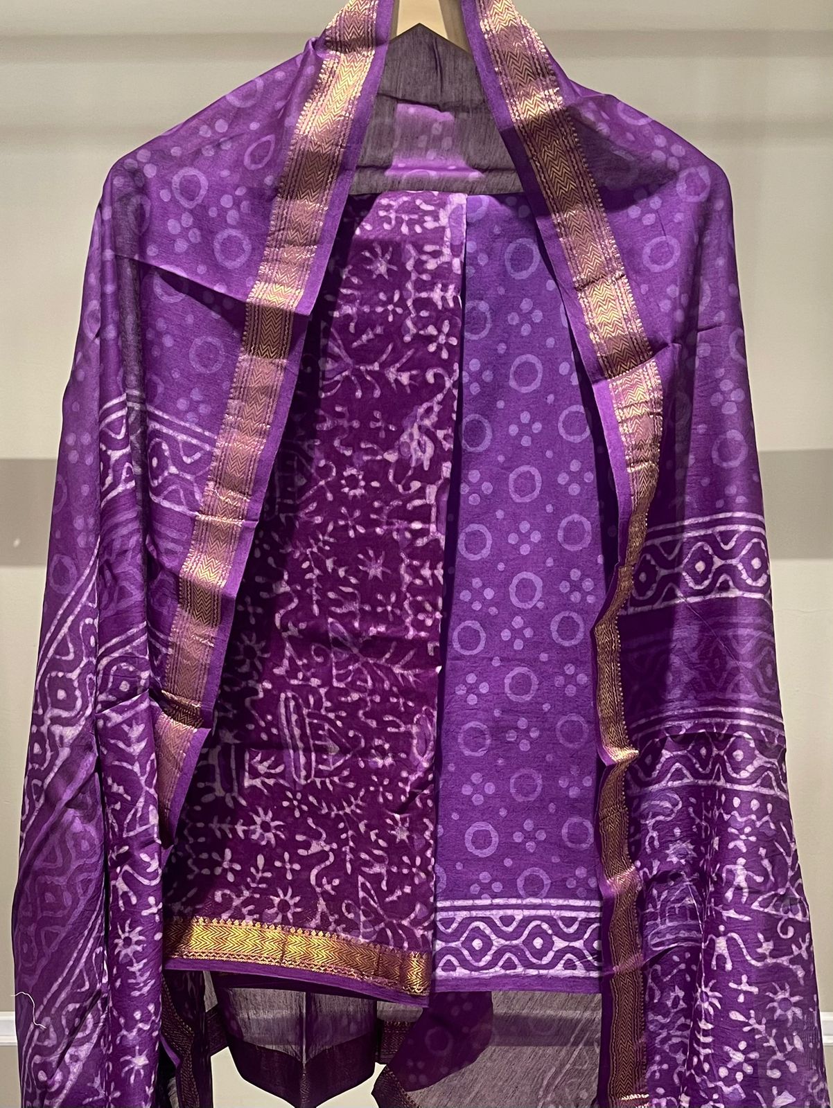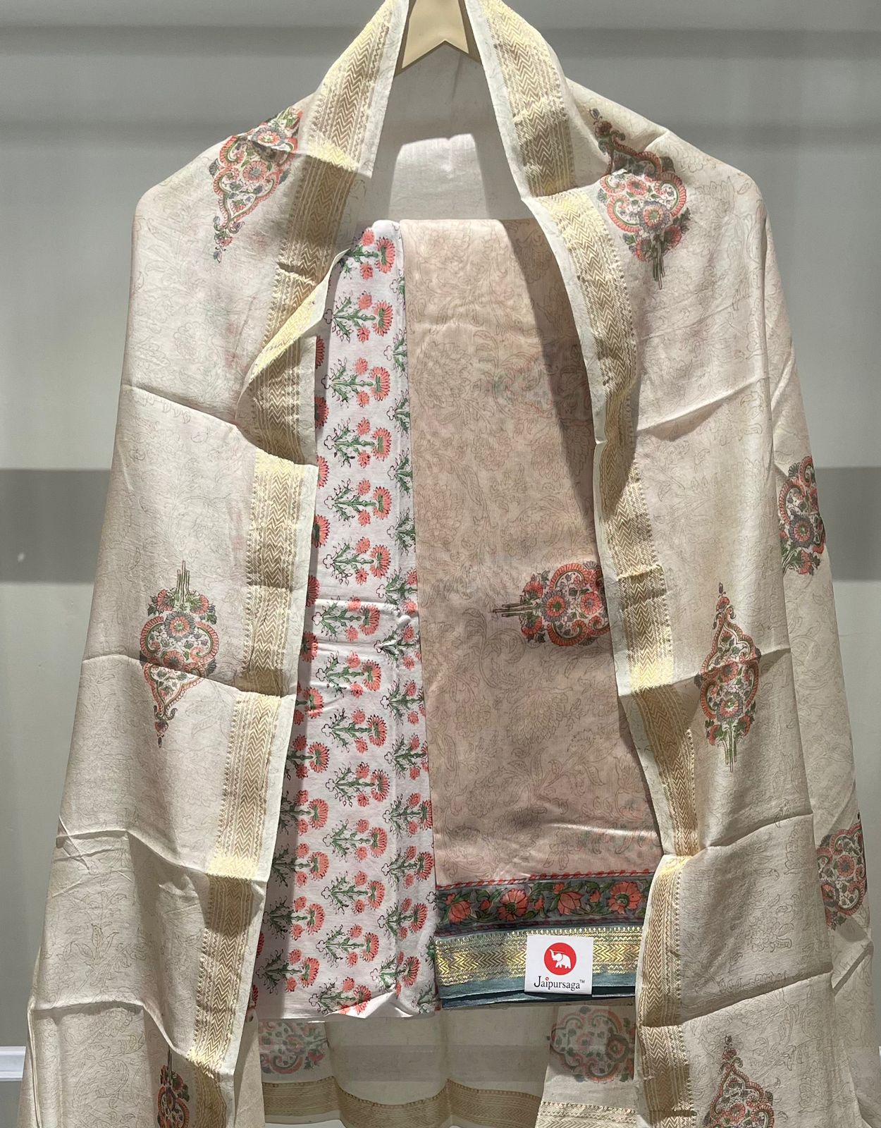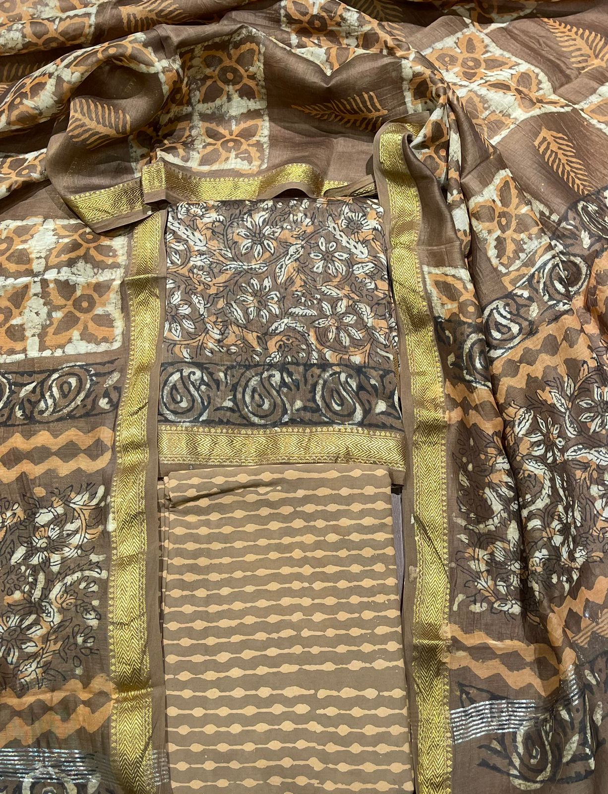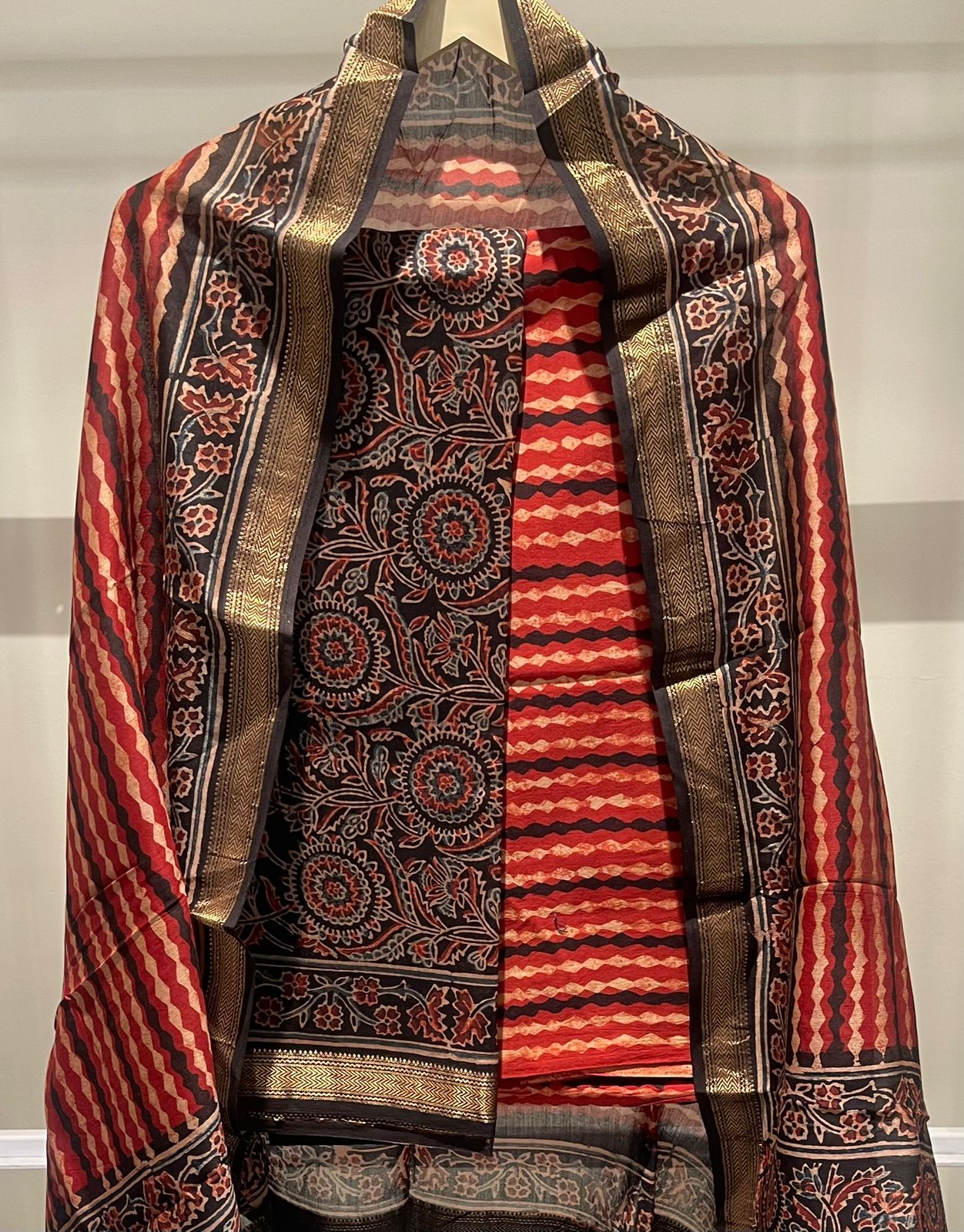 Mughal Hand Block Printed Maheshwari Silk Suit Set