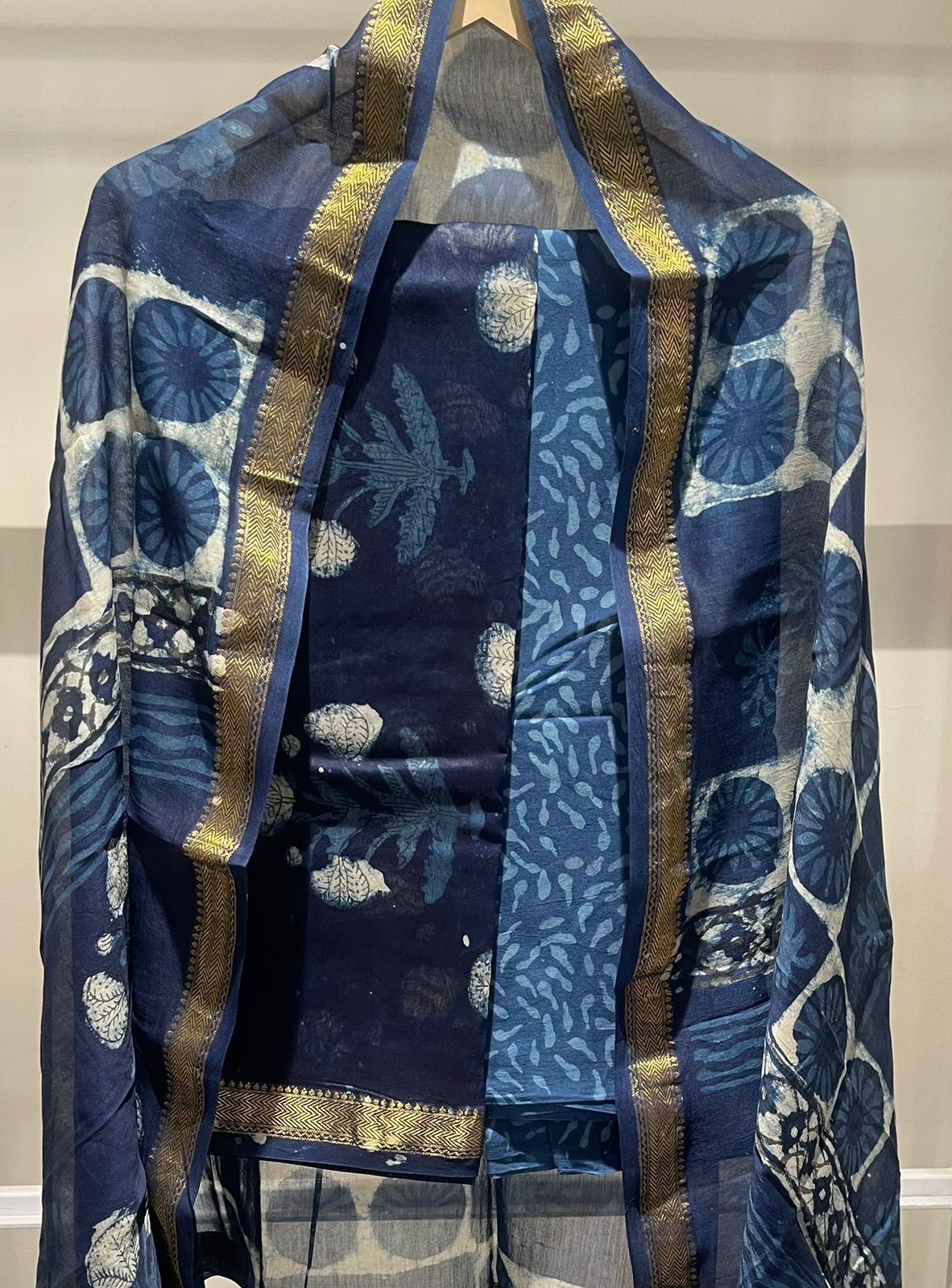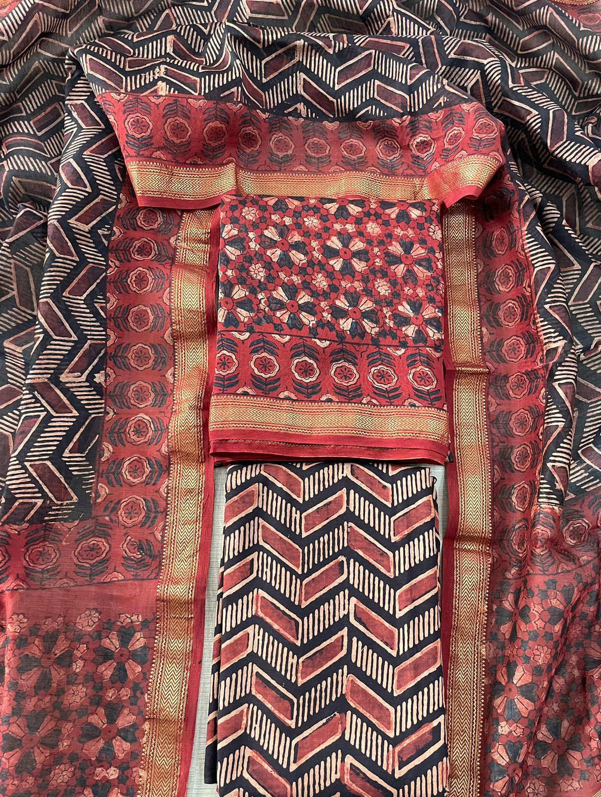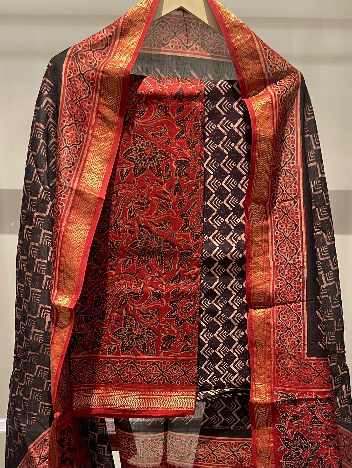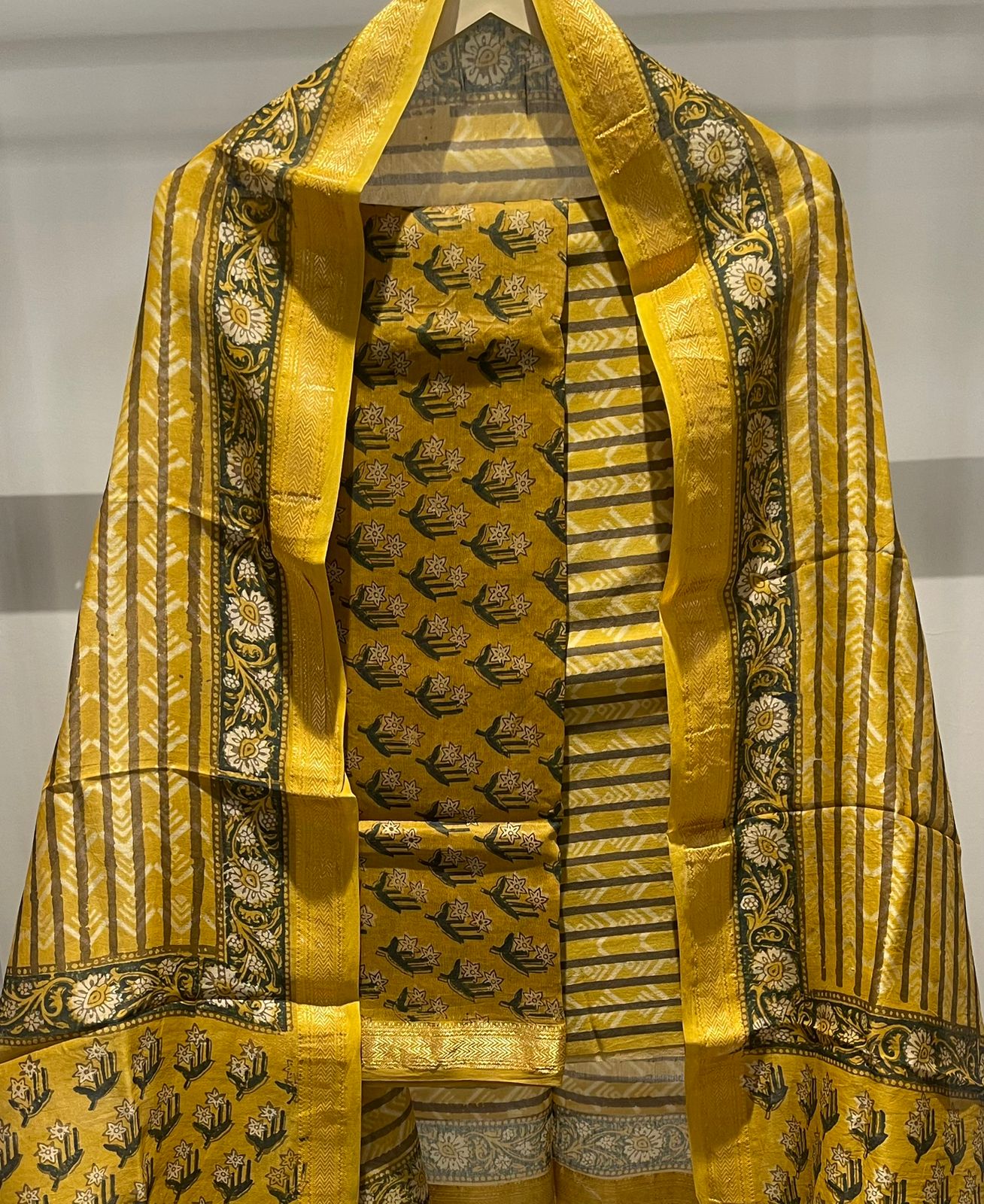 Mughal Hand Block Printed Maheshwari Silk Suit Set