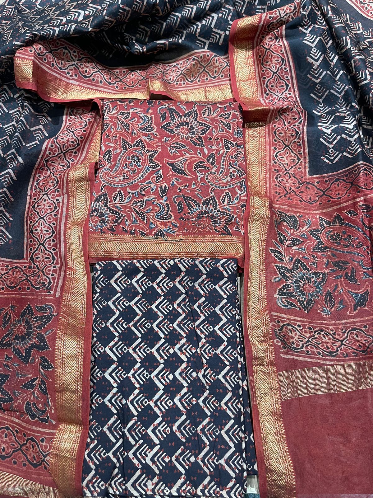 Bottom: Cotton hand Block Printed (2.5 Mtr)