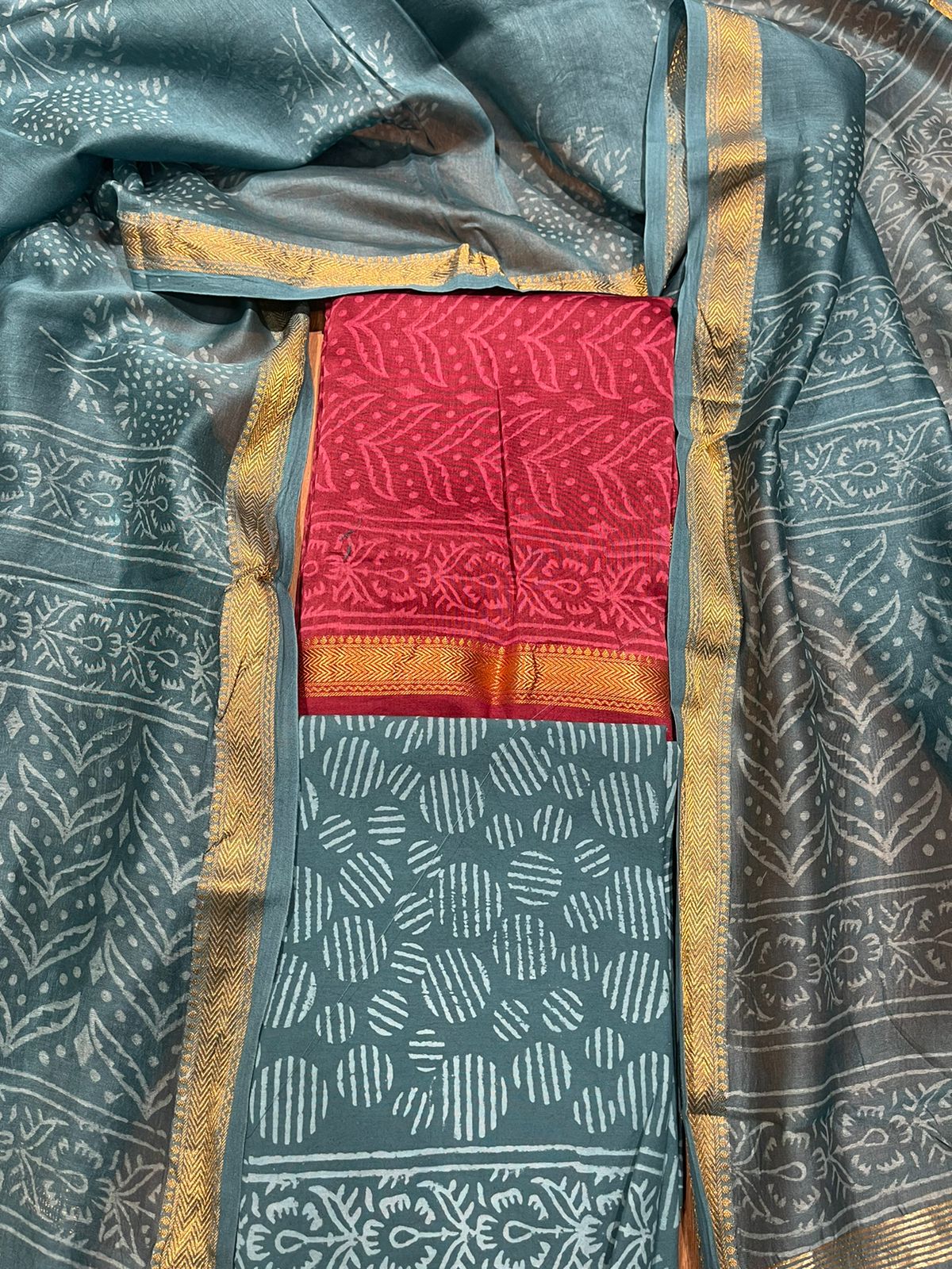 Dupatta: Maheshwari Silk hand Block Printed (2.5 Mtr).
