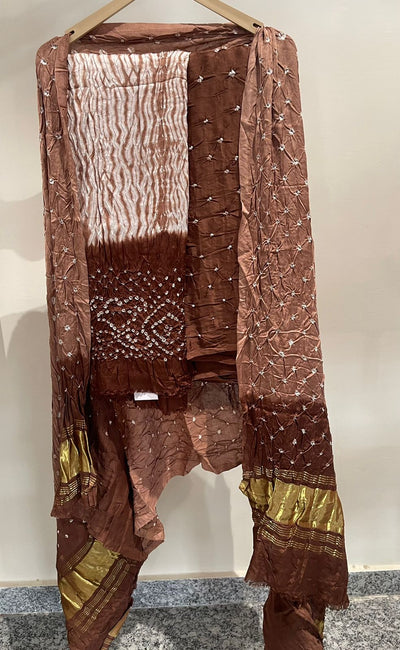 Pure Hand Bandhani Gajji Silk Suit Set