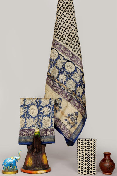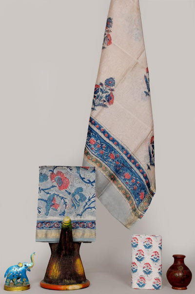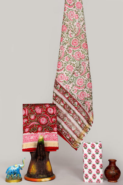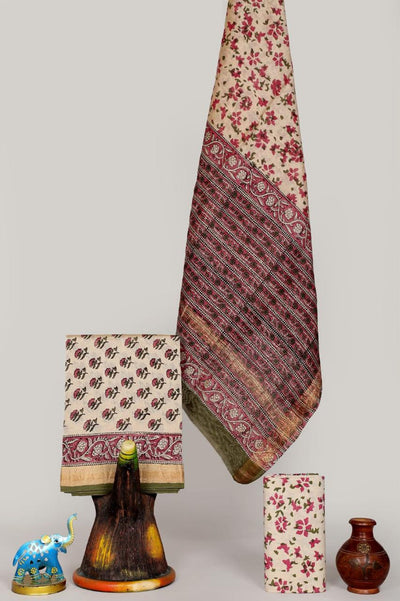 Premium Hand Block Jaal Floral Printed Maheshwari Silk Suit Set