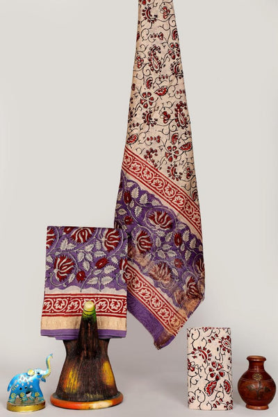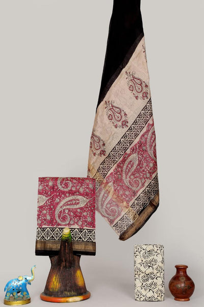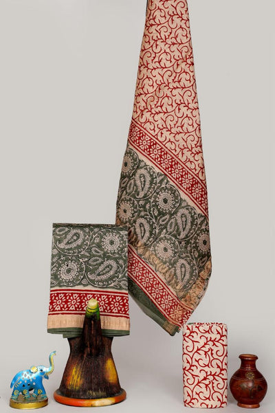 Mughal Hand Block Printed Maheshwari Silk Suit Set